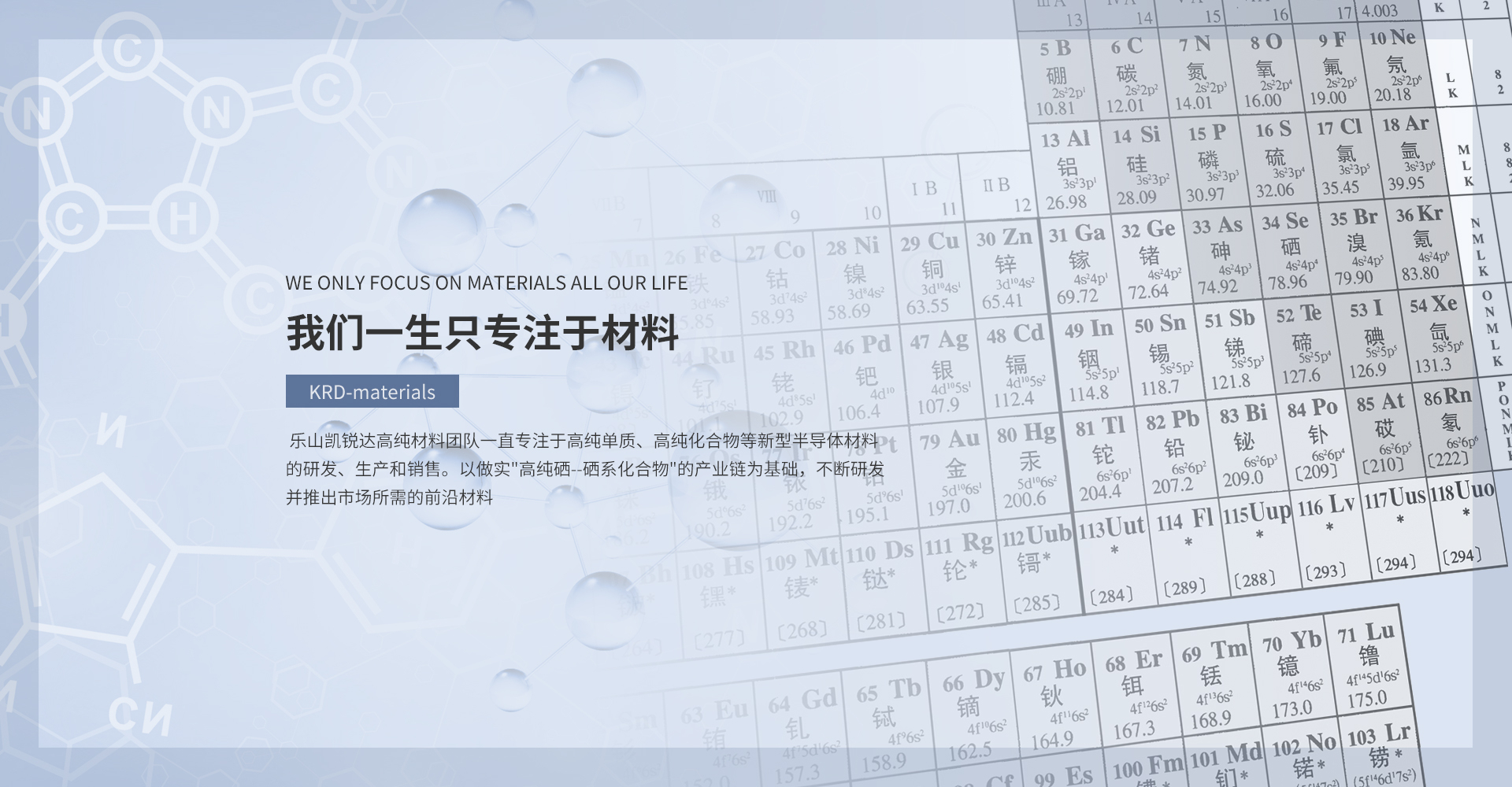 樂山凱銳達高純材料團隊一直專注于高純單質、高純化合物等新型半導體材料的研發、生產和銷售。以做實"高純硒--硒系化合物"的產業鏈為基礎,不斷研發并推出市場所需的前沿材料。專業人才與技術方面的優勢,為公司的技術創新、產品開發和產業化發展,打下了堅實的基礎。至今,研制的高純材料多達300余種,在國內高純領域處于領先地位。